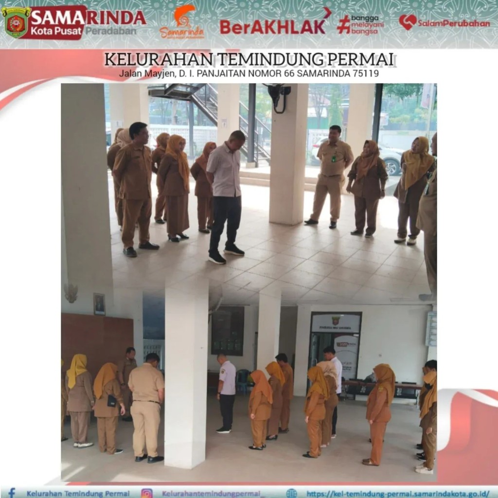 Senin pukul 07.45 WIB seluruh staff Kelurahan Temindung Permai melaksanakan Apel pagi di Aula Kelurahan Temindung Permai dipimpin langsung oleh Lurah Temindung Permai RIZKI MANDALA PUTRA, SH