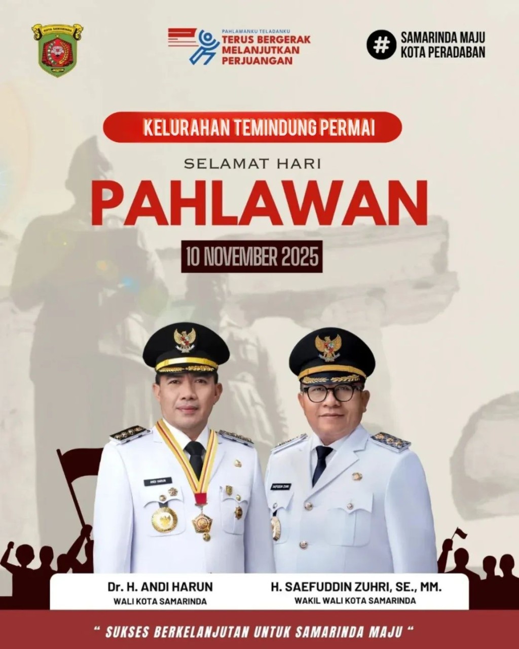 “Hari Pahlawan 2025: Pahlawanku Teladanku, Terus Bergerak, Melanjutkan Perjuangan!” November 10, 2025 Selamat Hari Pahlawan 2025 Mari terus bergerak dan melanjutkan semangat juang para pahlawan sebagai teladan dalam bekerja, melayani, dan membangun Indonesia yang lebih baik. #HariPahlawan #SamarindaMaju #PemkotSamarinda <...